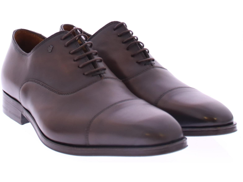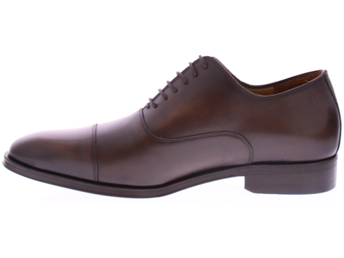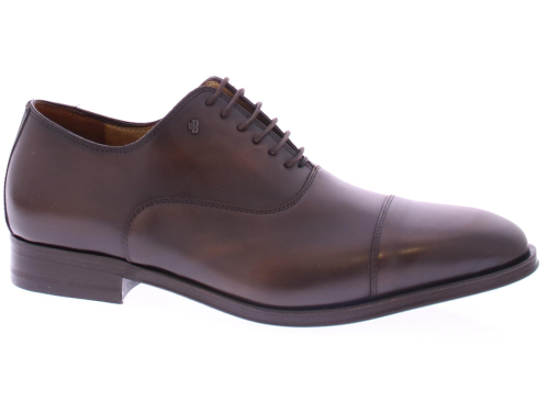 Dark brown leather men's lace-up shoe by Vam Bommel, model SBM-30088.21-02. The upper is made of high-quality, shiny leather with a metal Van Bommel tag on the shaft. The elegant lace-up closure with fine round laces gives this shoe a stylish look. This shoe comes in a wide H-last.