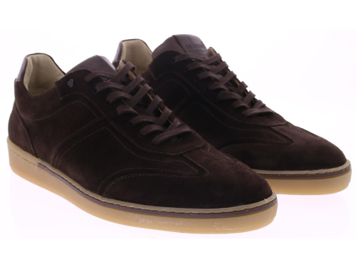 Casual van Bommel men's sneakers that perfectly balance sporty and stylish. Crafted from deep dark brown suede with a contrasting honey-colored rubber sole, these shoes exude class and simplicity. Ideal for the modern man seeking comfort without compromising on style. The upper is made of soft, supple suede that conforms to your foot for an excellent fit. The leather lining provides a breathable environment, allowing you to wear these sneakers effortlessly all day long. The subtle stitching, minimalist design, and perfect finish typify the high quality you've come to expect from van Bommel.
