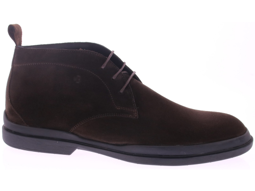 The Floris van Bommel Magma 02.00 is a contemporary chukka boot in dark brown suede. This style combines a modern, clean look with the unparalleled comfort and craftsmanship for which Floris van Bommel is known. The black sole and minimalist design make this shoe perfect for both formal and casual occasions.