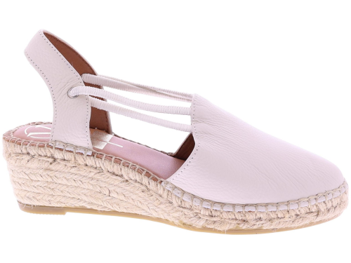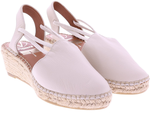 Cream-colored suede espadrilles from Viguera. These women's espadrilles have a closed toe and a summery rope sole, approximately 4 cm high. The elastic straps at the instep provide a comfortable fit and make them easy to slip on. The soft suede upper feels comfortable and pairs effortlessly with dresses, skirts, or linen trousers. Discover other women's espadrilles from Viguera at Klijsen.
