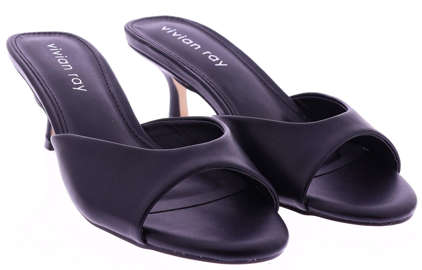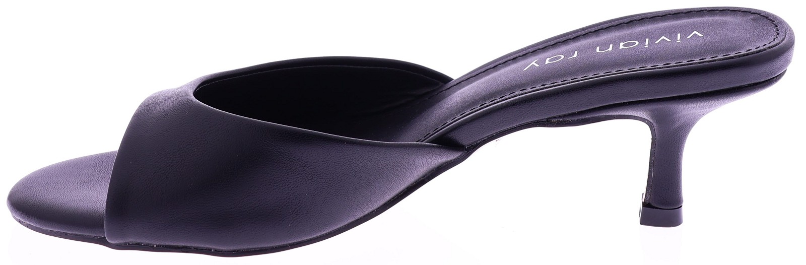 Vivian Ray's black PU leather women's slipper mule, model Ziva. This mule features a wide strap across the forefoot and a 5cm queen-size heel for a feminine look. The sole is made of thunit. A stylish and easy-to-wear mule that's perfect for both casual and formal outfits.