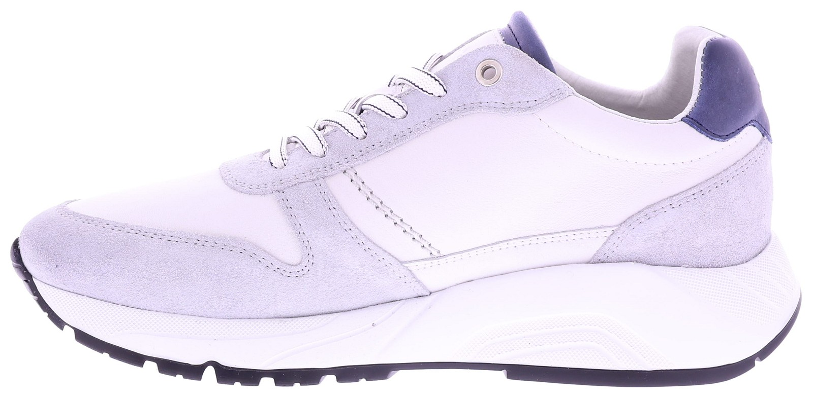 The De Greve Arnhem 3346 Loden is a stylish men's sneaker where Dutch craftsmanship and modern design come together. Crafted in light grey suede and leather, with subtle dark blue accents, this sneaker exudes pure class and sophistication. The shoe has a timeless look that effortlessly complements both a sporty and a dressy look. The soft leather and suede upper provides a luxurious feel and a natural fit. Inside, the leather lining offers optimal breathable comfort, while the removable footbed provides extra support and flexibility, ideal for those using their own insoles. The robust rubber sole with a light tread pattern ensures excellent grip and cushioning, making this sneaker suitable for daily use in every season. Thanks to the regular fit and refined lines, the Arnhem 3254 Loden strikes the perfect balance between comfort and style. Pair it effortlessly with chinos, jeans, or casual trousers for a polished, modern look with a touch of craftsmanship.