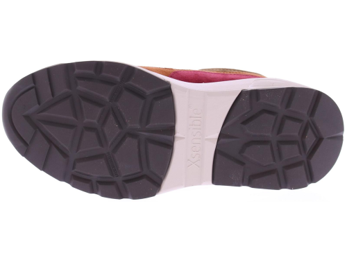 Multicoloured sneaker by Xsensible. The shoe is designed as the "stretchwalker" developed by Xsensible. This is based on a wooden balance slipper from Japan and ensures a natural and healthy posture. In combination with perfect cushioning, stability and firm grip, this shoe gives you the most comfortable walking experience. The sneaker has a removable footbed and a wider fit.