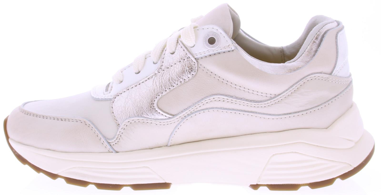 Cream-colored leather women's sneaker from Xsensible. The GOLDEN GATE 33000.3.17 shoe features the "stretchwalker" developed by Xsensible. Based on a wooden balance slipper from Japan, it promotes a natural and healthy posture. Combined with perfect cushioning, stability, and firm grip, this shoe offers the most comfortable walking experience. The sneaker has a removable footbed and a wider fit.