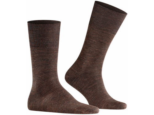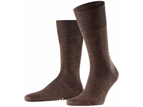 Falke Airport heren sokken in donkerbruin. Dankzij de innovatieve combinatie van hoogwaardige merinowol aan de buitenkant en huidvriendelijk katoen aan de binnenkant zorgen deze kousen voor een uitstekende temperatuurregeling en een buitengewoon draagcomfort. De sokken hebben een vlakke naad voor een drukvrij teenpunt en een verlengde band voor een plooivrije pasvorm bij het been. Materiaal: 60% Scheerwol, 23% Katoen, 15% Polyamide, 2% Elastaan.