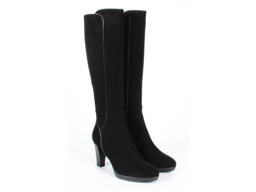 Zwart suede dames laarzen van Lilian. De laars heeft een XS schacht en is daardoor zeer geschikt voor dames met een smalle kuit. De laars is uitgevoerd op een leer beklede plateauzool zodat de 9 cm hoge hak comfortabel aanvoelt bij het dragen.