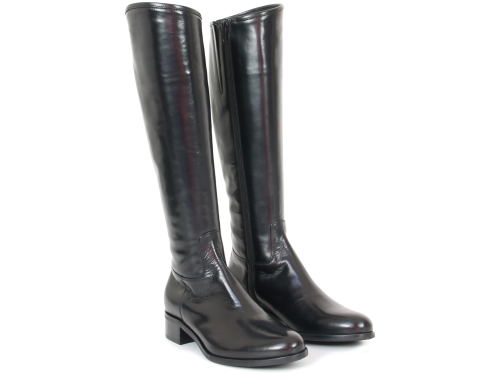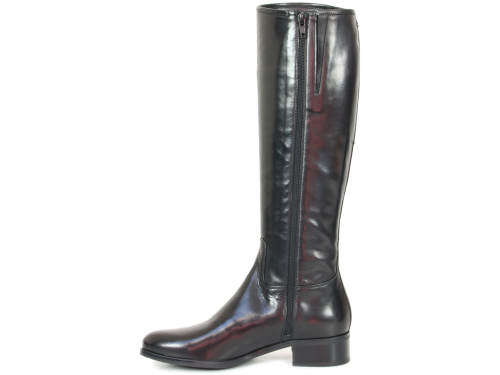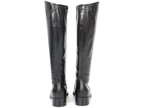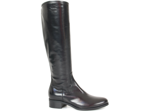 Zwart leren dames laarzen van Nalini. Deze elegante "rijlaars" is tijdloos en eigenlijk onmisbaar in elke garderobe. De laars is gemaakt met een XS schacht die geschikt is voor de smalle kuit.