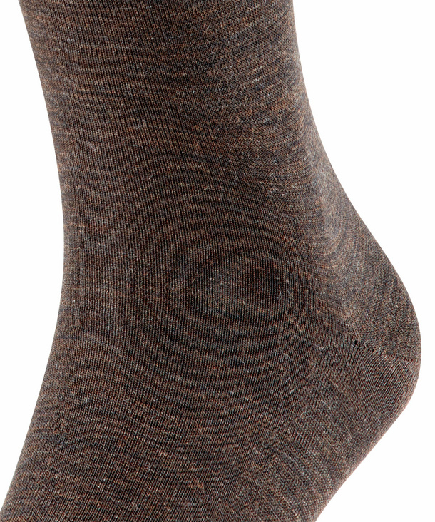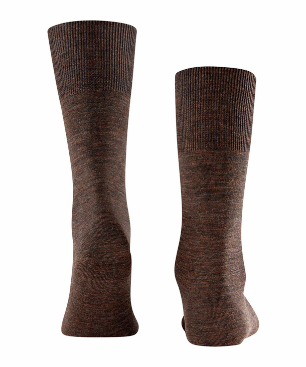 Falke Airport heren sokken in donkerbruin. Dankzij de innovatieve combinatie van hoogwaardige merinowol aan de buitenkant en huidvriendelijk katoen aan de binnenkant zorgen deze kousen voor een uitstekende temperatuurregeling en een buitengewoon draagcomfort. De sokken hebben een vlakke naad voor een drukvrij teenpunt en een verlengde band voor een plooivrije pasvorm bij het been. Materiaal: 60% Scheerwol, 23% Katoen, 15% Polyamide, 2% Elastaan.