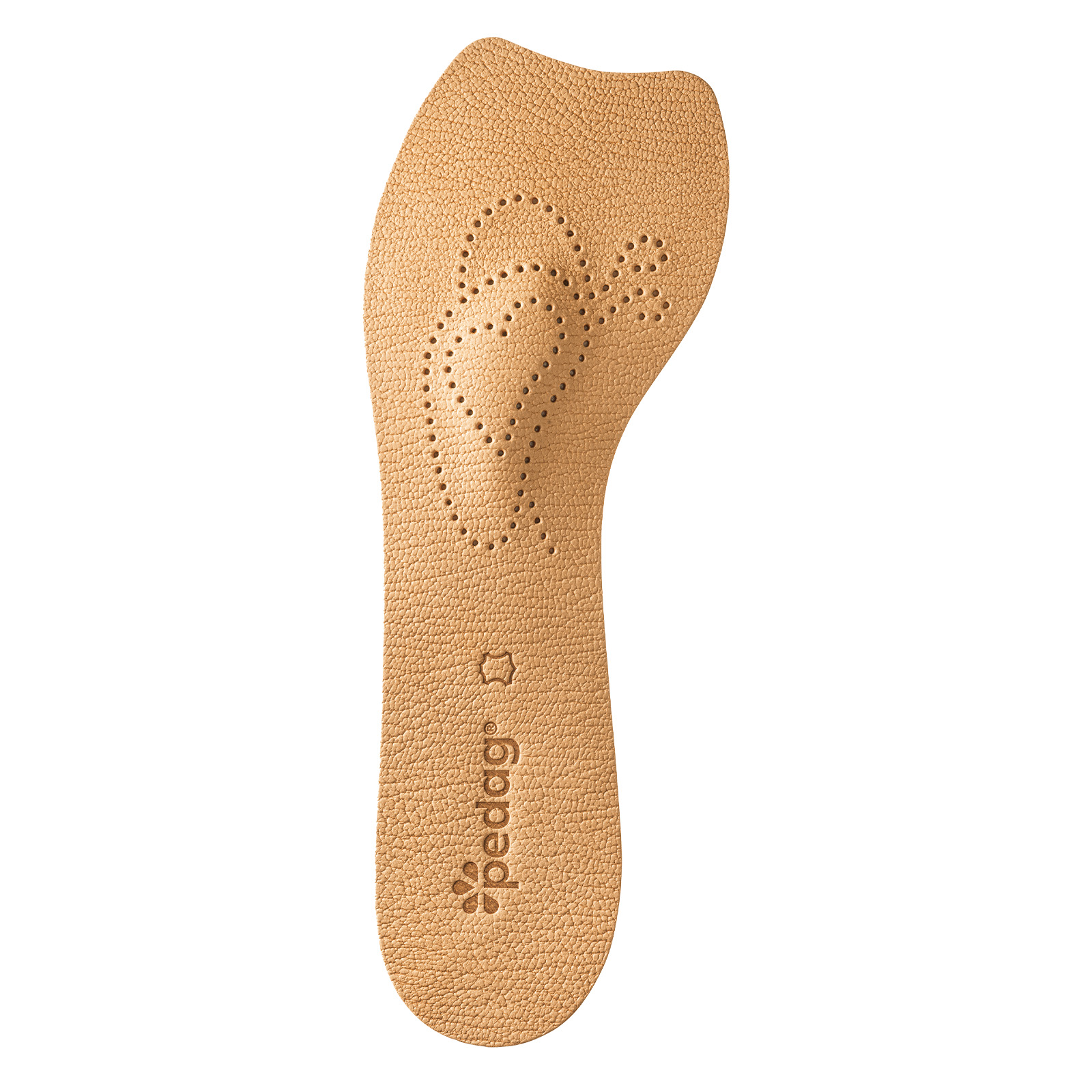 Pedag Lady 3/4 leren inlegzool, met spreidvoetpolster voor optimaal comfort en ontspanning van de voorvoet. Zeer geschikt voor hoge hakken voor de flexibiliteit van de zool. Zelfklevend, waardoor deze zelfs bij hoge hakken perfect blijft zitten. artikelnummer 33793
