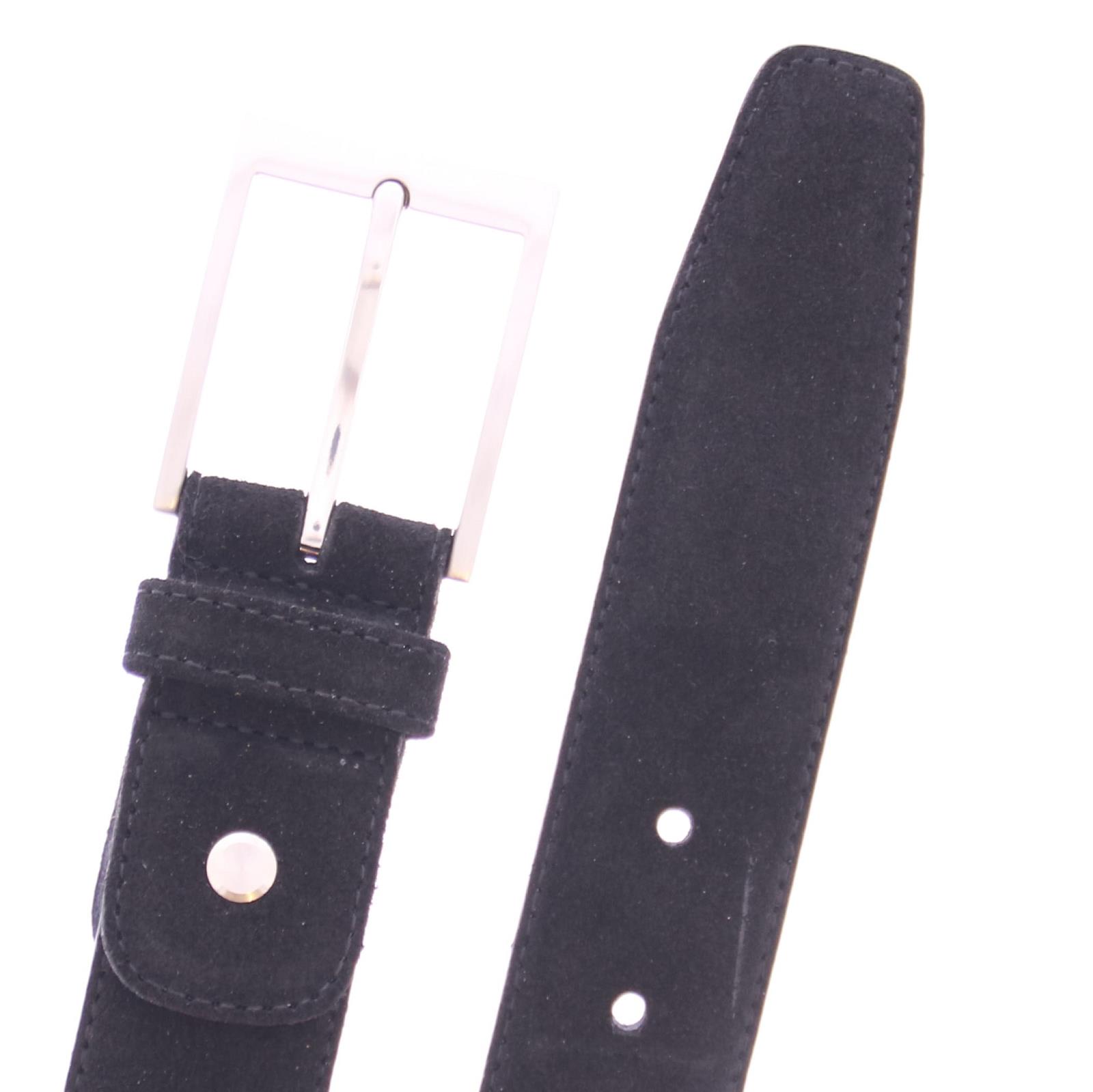 Zwart suede heren riem. De riem is 3,5 cm breed heeft een leren voering en is in te korten aan de gesp kant.