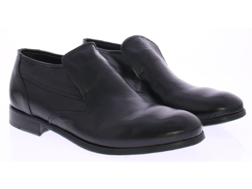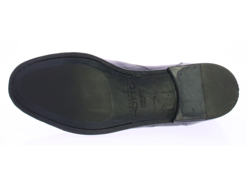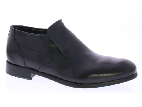 Zwart leren heren instapper van Alexander Hotto. De instapper sluit hoog op de voet en is uitgevoerd in nonchalant leer, waardoor het een vintage look krijgt. De zolen zijn van leer met een rubber inzit, voor behoud van comfort, maar toch te dragen met nat weer.