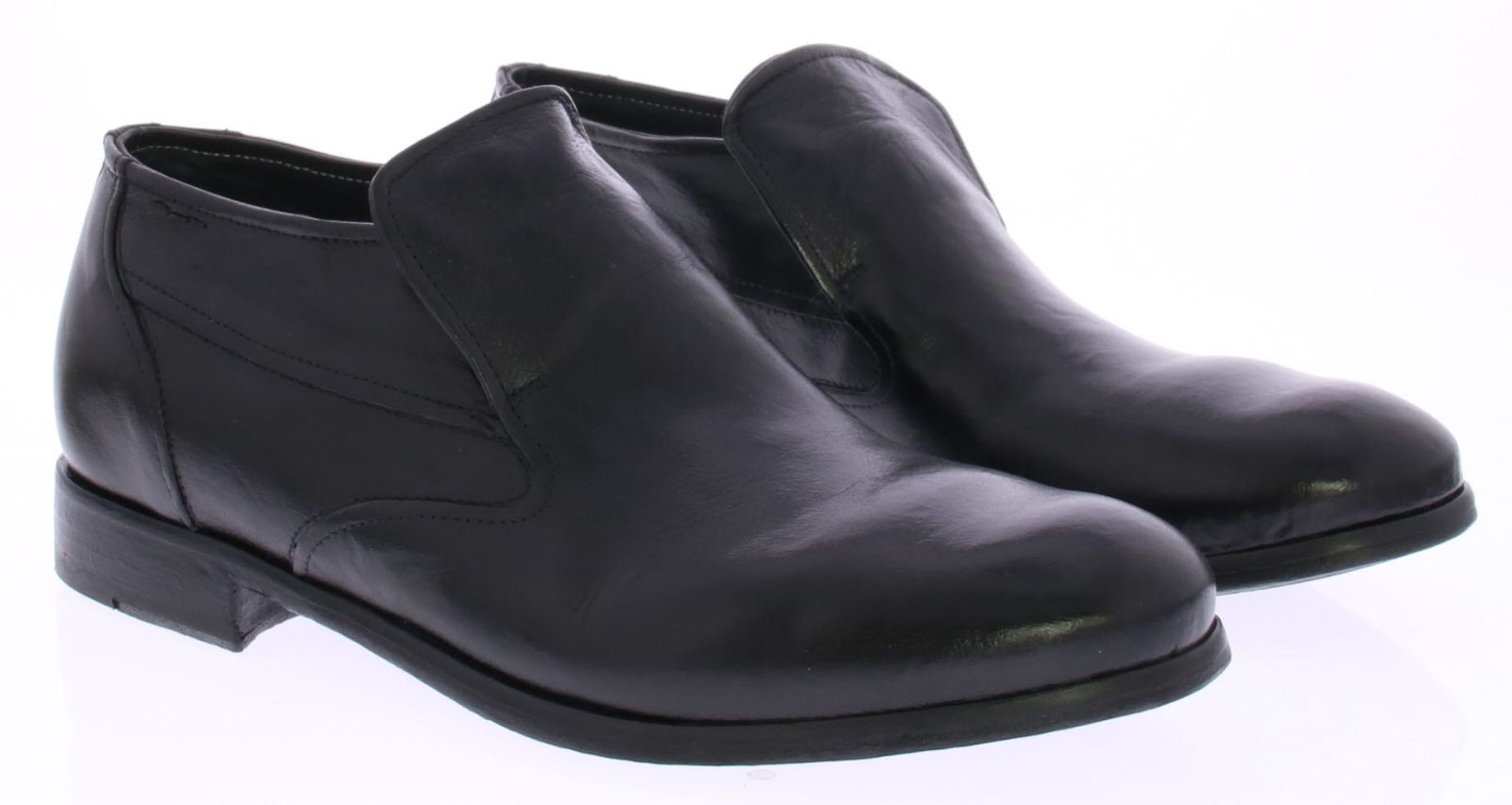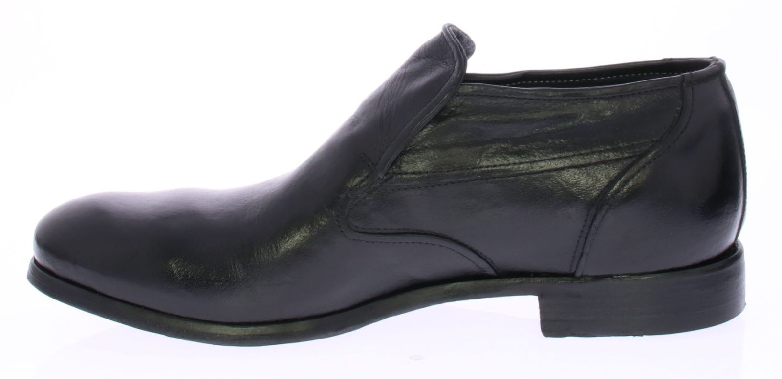 Zwart leren heren instapper van Alexander Hotto. De instapper sluit hoog op de voet en is uitgevoerd in nonchalant leer, waardoor het een vintage look krijgt. De zolen zijn van leer met een rubber inzit, voor behoud van comfort, maar toch te dragen met nat weer.