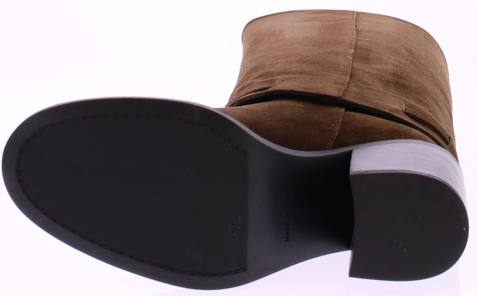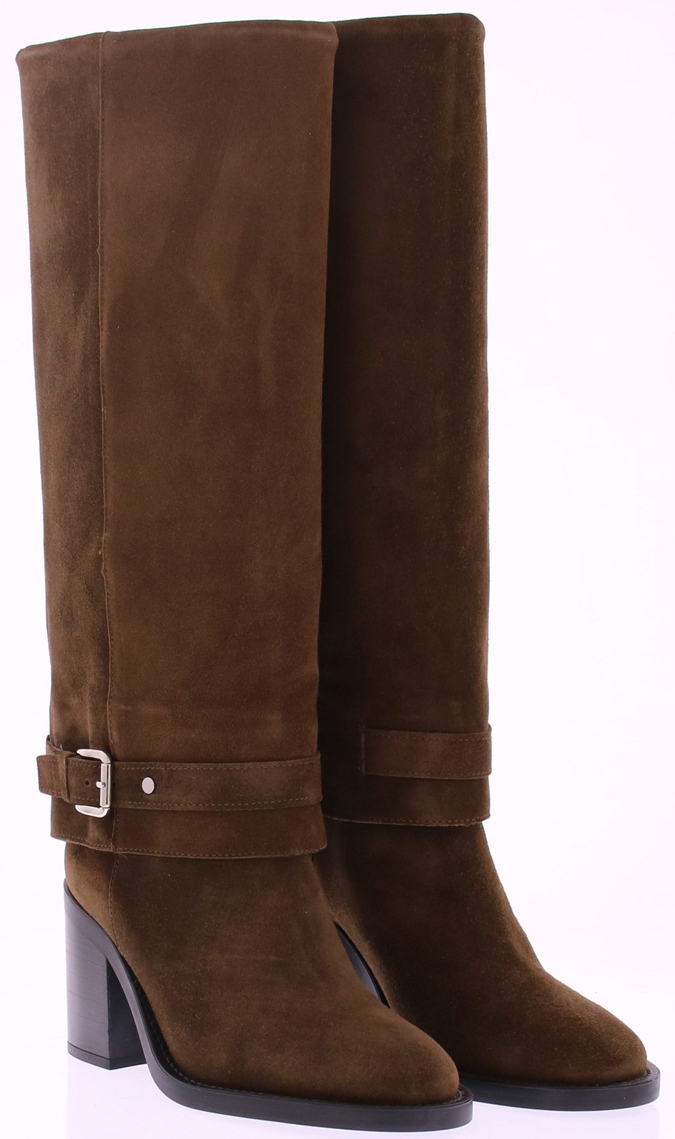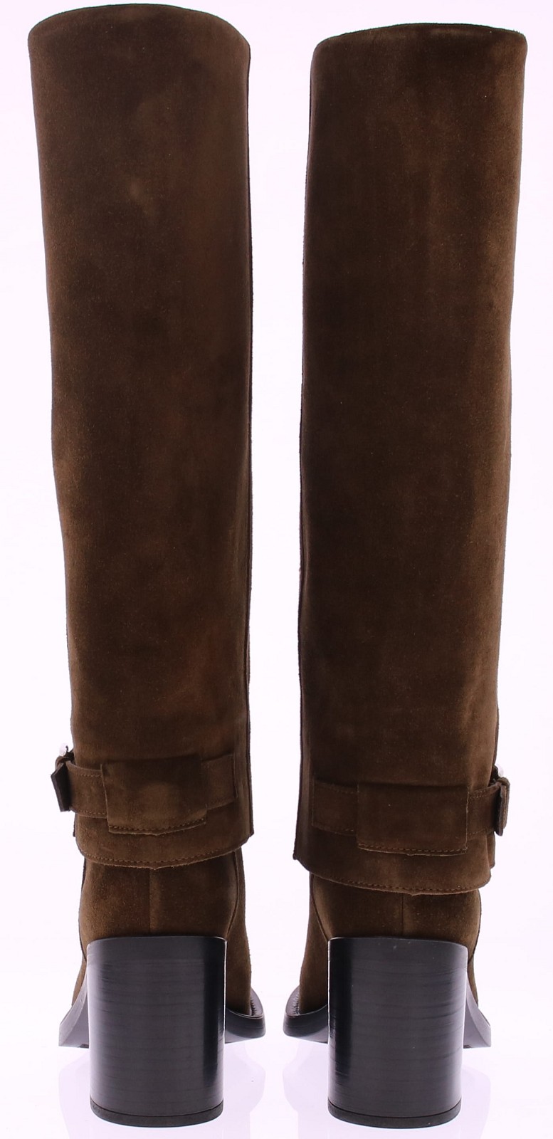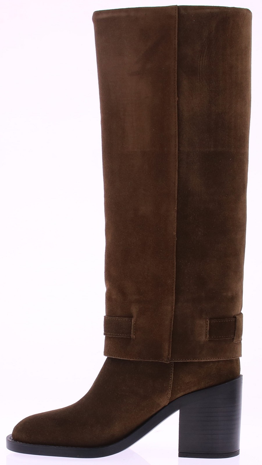 Bruin suede lange laars voor dames van het merk Alpe. Deze lange laars van het Spaanse merk Alpe straalt elegante eenvoud uit met een stoer randje. Uitgevoerd in rijk bruin suède en voorzien van een decoratief bandje rond de enkel met een verfijnde gespsluiting. De rechte blokhak van 7 cm biedt een krachtige, vrouwelijke houding zonder in te leveren op comfort. Draagbaar onder een jurk of over een skinny jeans – dit is een veelzijdige eyecatcher voor het najaar en de winter.