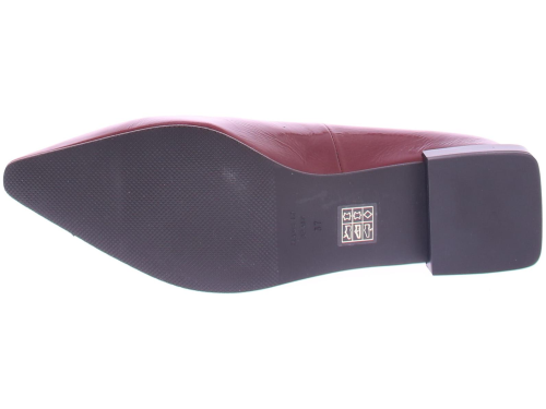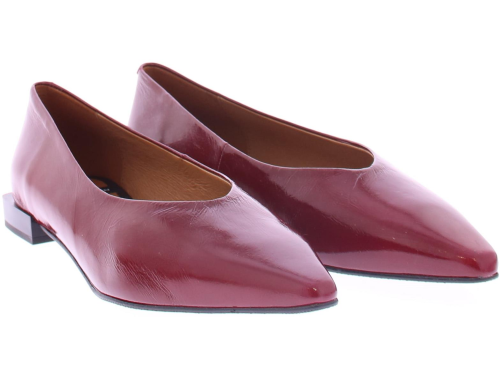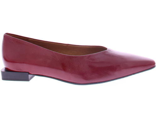 Rood lak leren dames pump van Angel Alarcon. Deze pump heeft een iets spitse neus en een leuke speels blokhakje van 2 cm hoog. De voering is van leer en de zool van rubber.