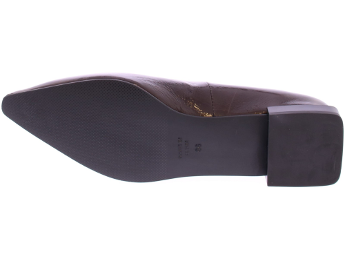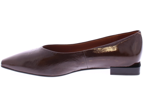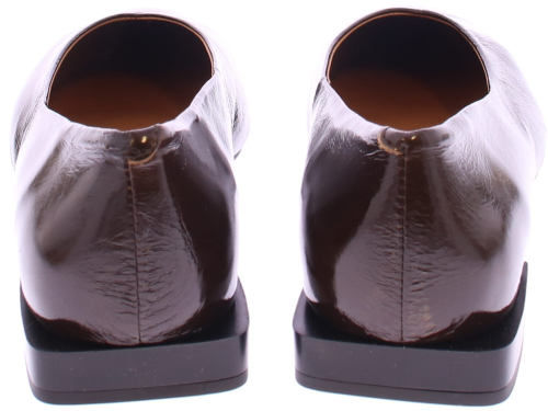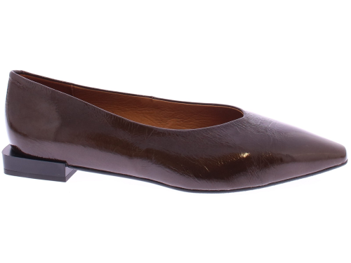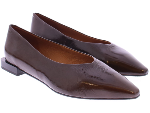 Donker bruin lak leren dames ballerina van Angel Alcron. Deze elegante damespump is gemaakt van lak leer en heeft een iets spitse neus . De pump staat op een stijlvol blokhakje van 2 cm hoog. De binnenvoering is volledig van leer en de rubberen zool zorgt voor extra grip. Een modieuze én comfortabele keuze voor elke gelegenheid.