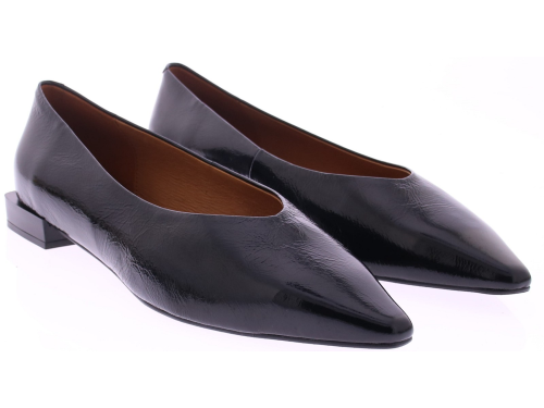 Donker bruin lak leren dames ballerina van Angel Alcron. Deze elegante damespump is gemaakt van lak leer en heeft een iets spitse neus . De pump staat op een stijlvol blokhakje van 2 cm hoog. De binnenvoering is volledig van leer en de rubberen zool zorgt voor extra grip. Een modieuze én comfortabele keuze voor elke gelegenheid.