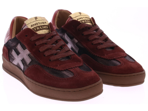 Bordeaux suéde dames sneakers van Another Trend. Deze sneakers de zijn gemaakt van bordeaux rood suède en bordeaux metallic suede en leer met bordeaux metallic veters. Het merklogo aan de zijkant is gemaakt van leer. De binnenzijde is van leer. voorzien van een uitneembaar voetbed. De gummy zool in donkerbruin geven dit paar een Old Skool look.