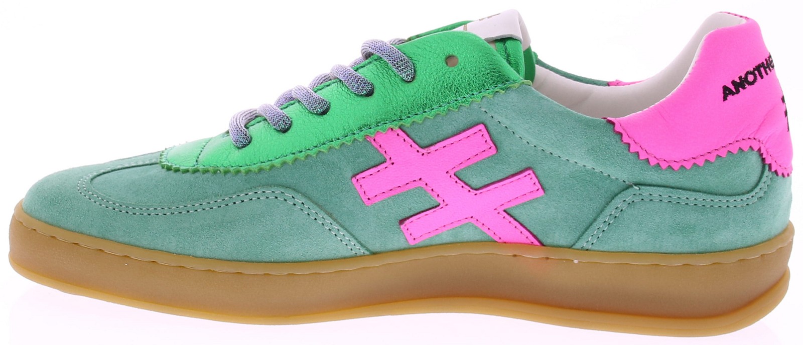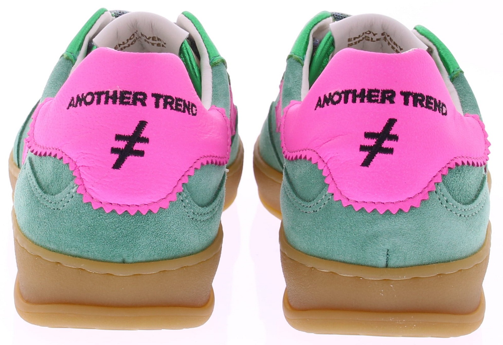 Smaragd groen suède dames sneaker van Another Trend. Deze sportieve sneaker combineert zacht suède met frisse accenten in fel roze. De voering is uitgevoerd in vegan leer en het voetbed is vervangbaar voor uw eigen persoonlijke inlegzool. Een modieuze keuze die moeiteloos past bij jeans of een casual outfit. Ontdek ook de andere dames sneakers van Another Trend bij Klijsen.