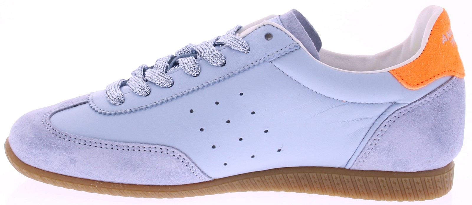 Lichtblauw leer met suède dames sneaker van Another Trend. Deze sportieve sneaker combineert zacht suède met frisse accenten in fel oranje. De voering is uitgevoerd in vegan leer en het voetbed is vervangbaar voor uw eigen persoonlijke inlegzool. Een modieuze keuze die moeiteloos past bij jeans of een casual outfit. Ontdek ook de andere dames sneakers van Another Trend bij Klijsen.