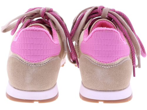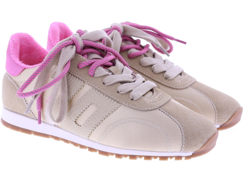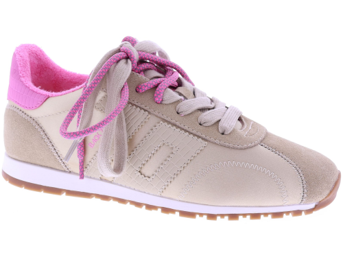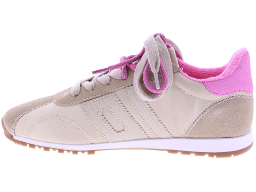 Beige suède met satijn dames sneaker van Back70. Dit model Asian G26-205 is uitgevoerd in een combinatie van suède en satijn, met een roze detail op de hiel en een extra roze veter voor een speels accent. Het model heeft een uitneembaar voetbed voor uw eigen persoonlijke inlegzool en een rubberen zool voor dagelijks gebruik. Ontdek ook de andere dames sneakers van Back70 bij Klijsen.