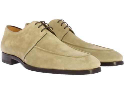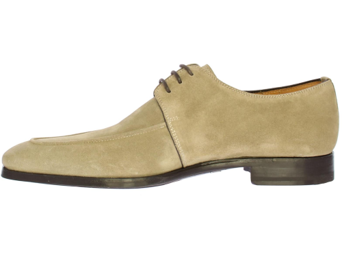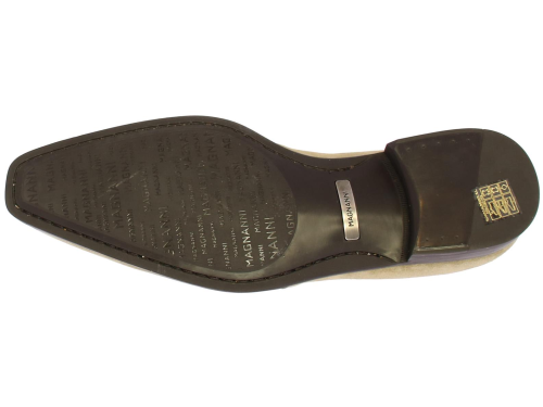 Beige suede heren veterschoen van Magnanni. Deze schoen is uitgevoerd met een spiegel neus. De schoen is leer gevoerd en komt op een rubberen zool.