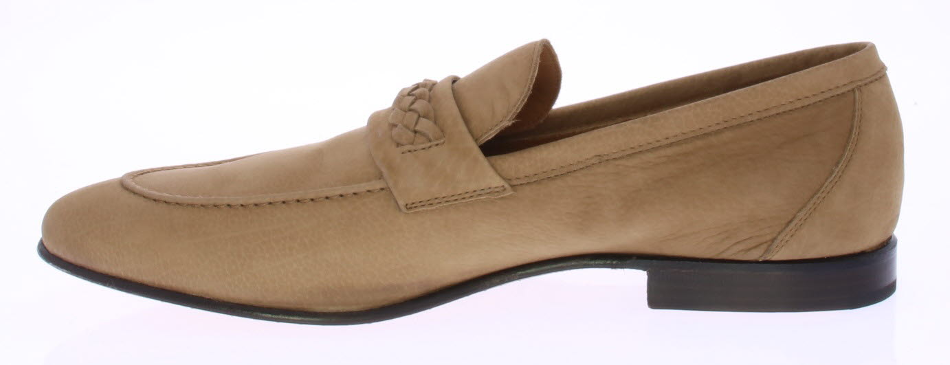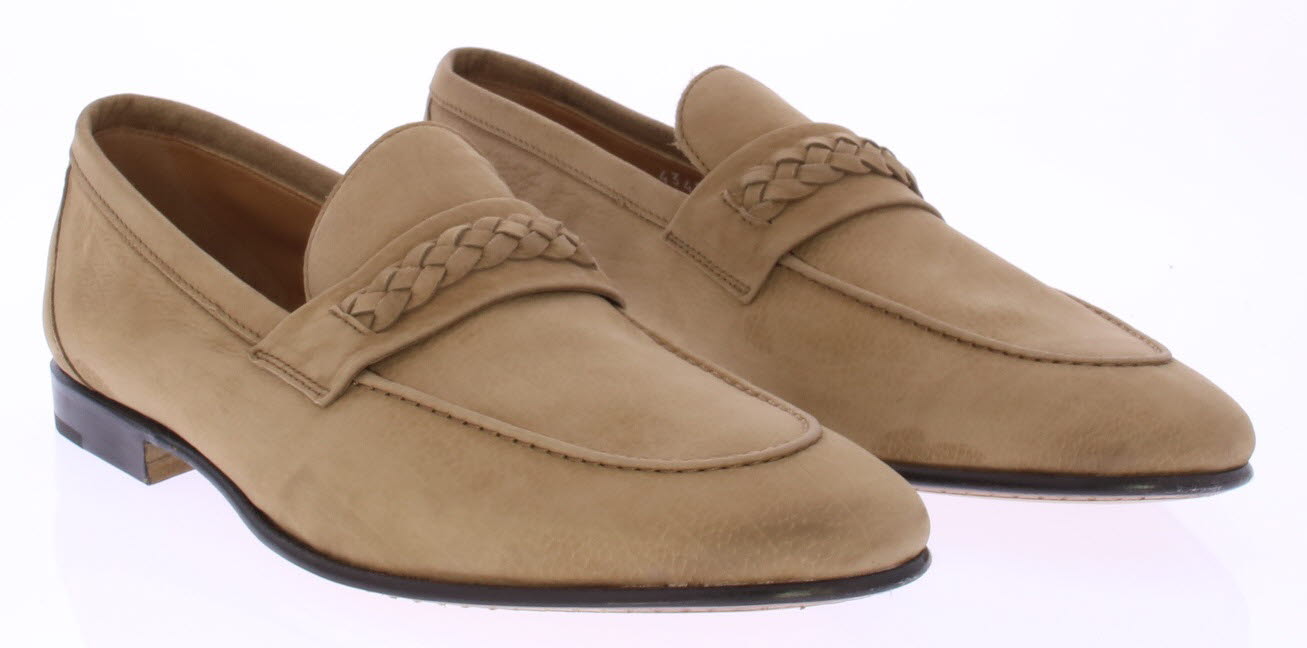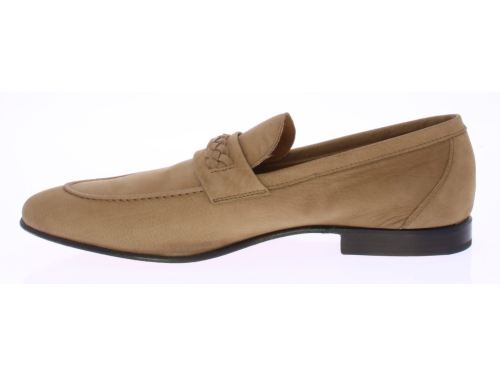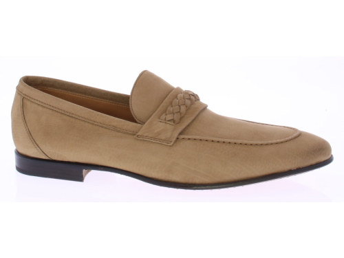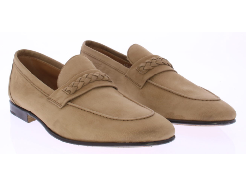 Beige suede heren instapper van Moreschi. De instapper is uitgevoerd in zeer soepel suede op een leren zool met vlecht versiering over de passant. De schoen is ongevoerd gemaakt.