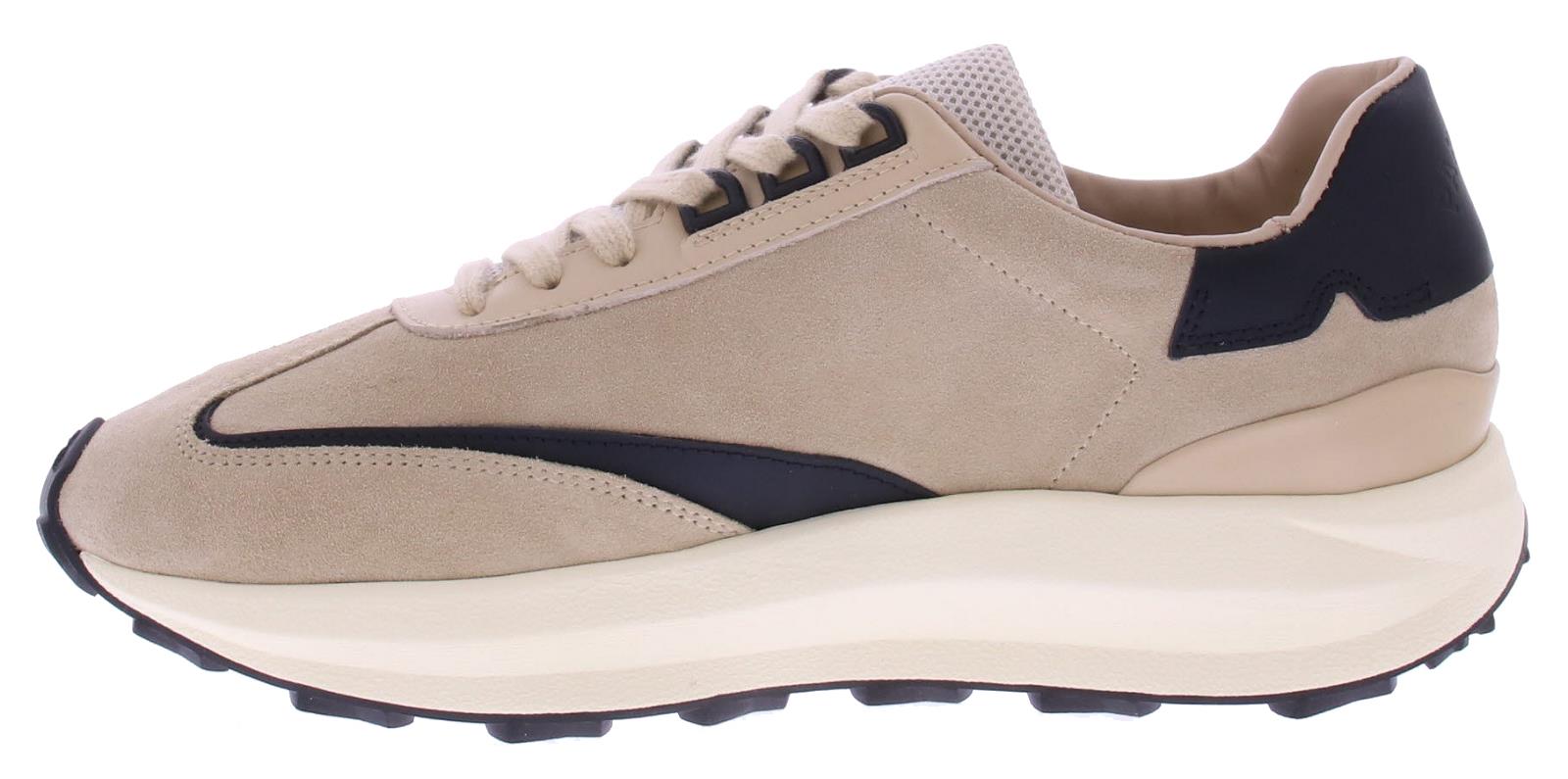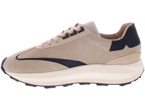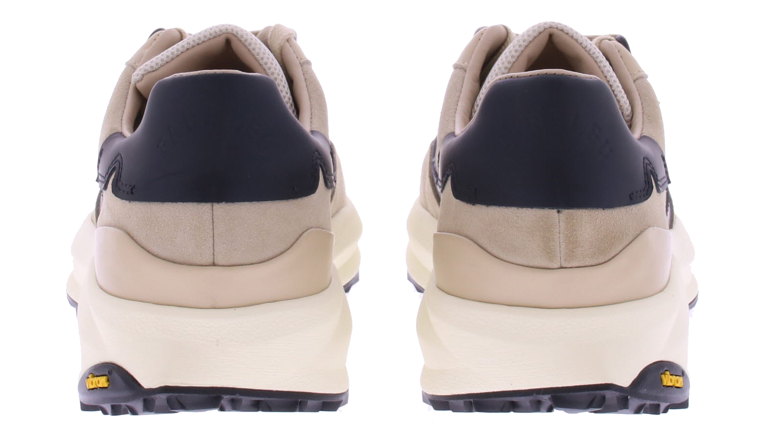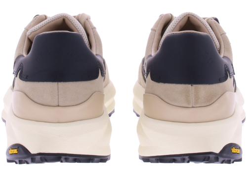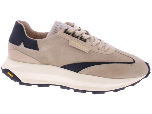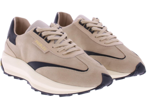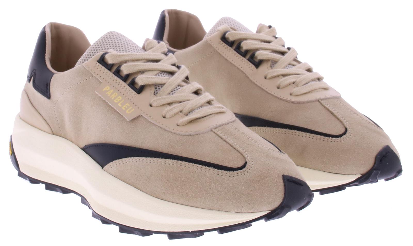 Heren sneaker van Parbleu op een grove rubberen vibram zool. De schoen heeft een beige suede bovenwerk en heel veel demping in de zool. De voering is van leer en het voetbed uitneembaar.