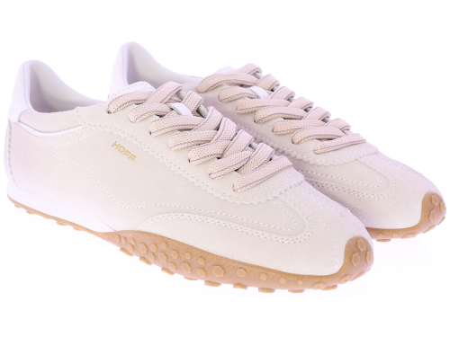 Beige suède dames sneakers van Hoff, model Bridge FL beige. Deze sneaker is uitgevoerd in suède met subtiele leren details en heeft een sportieve zool met gripvast profiel. Het zachte, uitneembare voetbed biedt optimaal comfort bij dagelijks gebruik. Een veelzijdig model dat moeiteloos combineerbaar is met elke garderobe. Ontdek ook de andere dames sneakers van Hoff bij Klijsen.