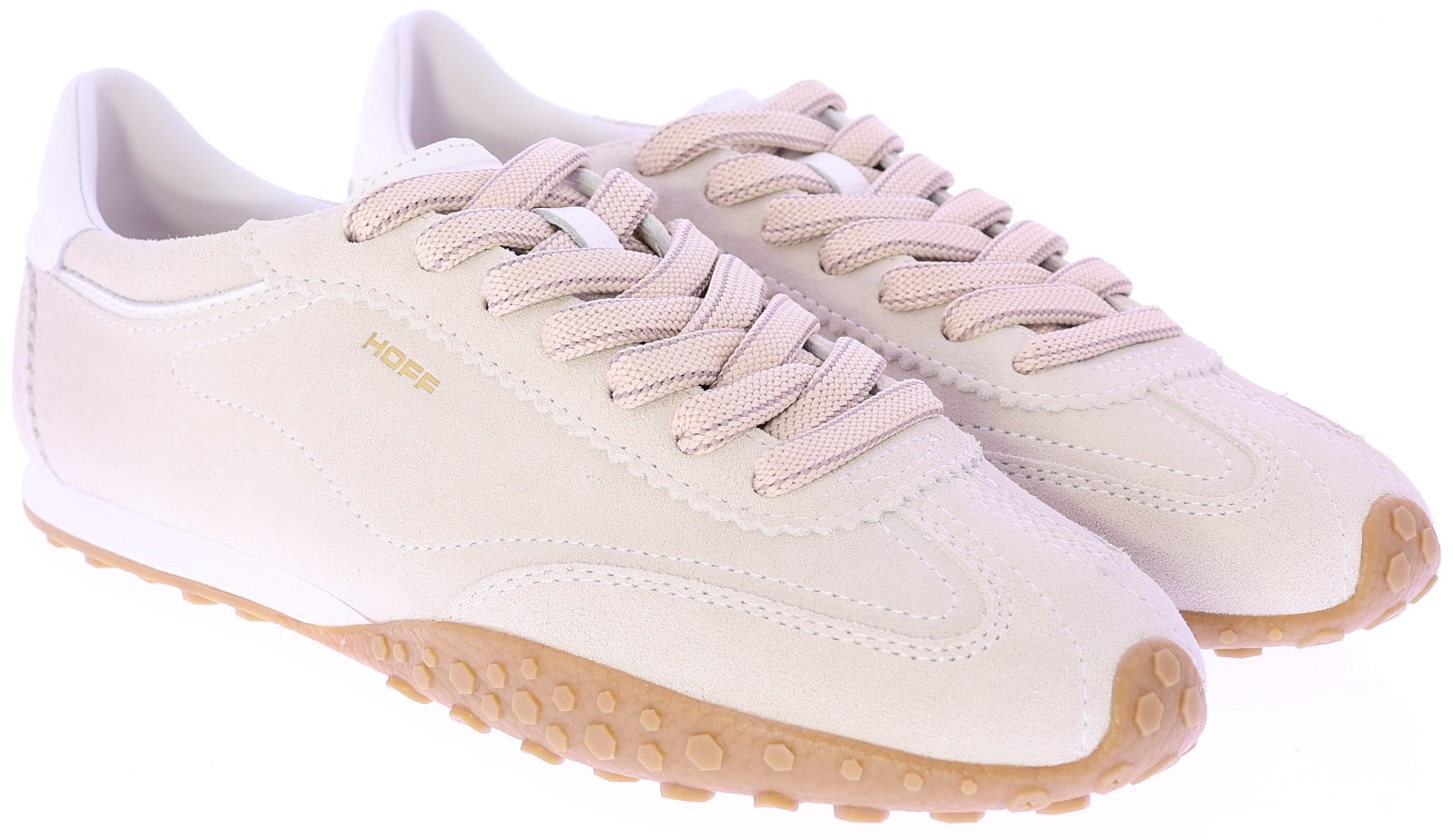 Beige suède dames sneakers van Hoff, model Bridge FL beige. Deze sneaker is uitgevoerd in suède met subtiele leren details en heeft een sportieve zool met gripvast profiel. Het zachte, uitneembare voetbed biedt optimaal comfort bij dagelijks gebruik. Een veelzijdig model dat moeiteloos combineerbaar is met elke garderobe. Ontdek ook de andere dames sneakers van Hoff bij Klijsen.