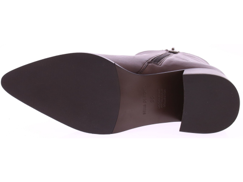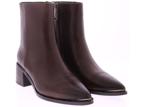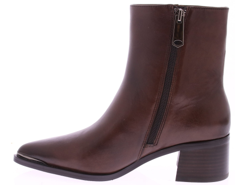 Donkerbruin leren dames korte laars van Bella di Roma. Deze stijlvolle laars van Bella di Roma is gemaakt van zacht nappa leer en heeft een mooie metalen afwerking aan de neus. De leren voering zorgt voor extra comfort en de rits aan de binnenkant maakt aan- en uittrekken makkelijk. De laars staat op een comfortabele blokhak van 4 cm. Een stijlvolle laars die je overal bij kunt dragen.
