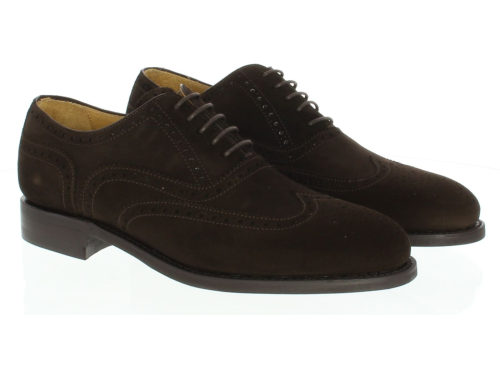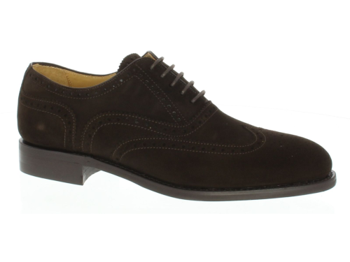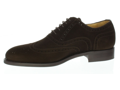 Donker bruin suede brogue veterschoen van Berwick. Het bovenwerk van de schoen is van suéde en de voering van kalfsleder. De maakwijze van de schoen is goodyear en de zool is een Dainite rubber zool ( dit is een van de sterkste rubber onderwerken op de markt).