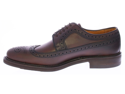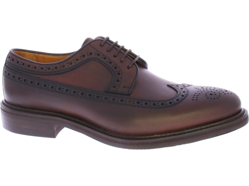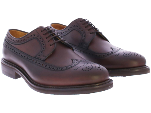 Donker bruin gevet leren heren veter brogue van Berwick. De schoen heeft een klep sluiting, is goodyear gemaakt en is voorzien van een daynaite rubber onderwerk.