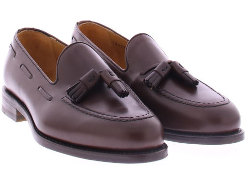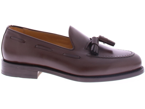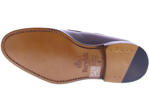 Heren tassel loafer van Berwick in donkerbruin leer op een leren zool . De schoen is goodyear gemaakt en heeft een leren voering.