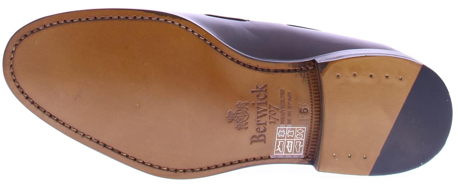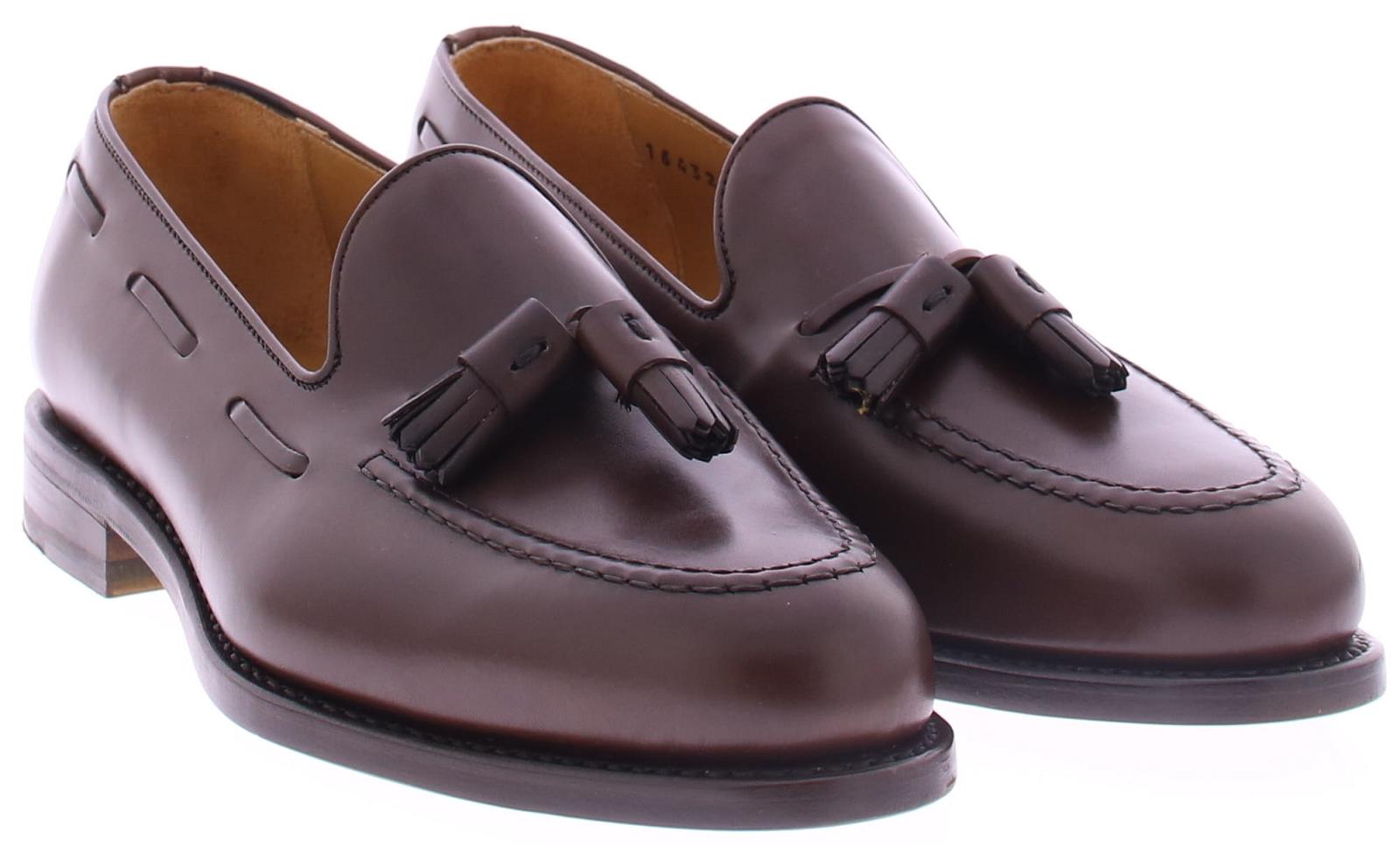 Heren tassel loafer van Berwick in donkerbruin leer op een leren zool . De schoen is goodyear gemaakt en heeft een leren voering.