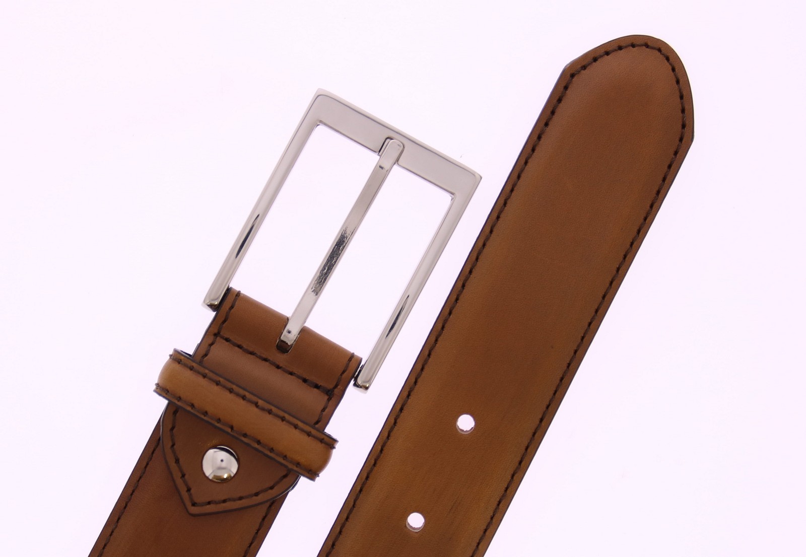 Cognac leren heren riem van Berwick. De riem heeft een leren voering en kan aan de gesp kant worden ingekort.