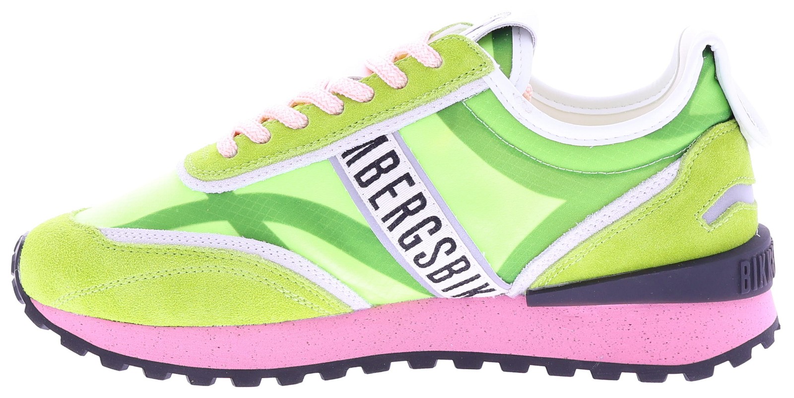 Groene dames sneakers van Bikkembergs, model 30611. Deze sportieve sneaker is uitgevoerd in frisgroen mesh met suède details en heeft transparante panelen. De roze zool met subtiele spikkels geeft het model een opvallend en speels kleuraccent. De herkenbare Bikkembergs-band aan de zijkant zorgt voor een stoer en sportief detail. De binnenzool is uitneembaar en daardoor geschikt voor eigen inlegzolen. Een eigentijdse sneaker die perfect past bij een casual voorjaars- of zomeroutfit. Ontdek ook de andere dames sneakers van Bikkembergs bij Klijsen.