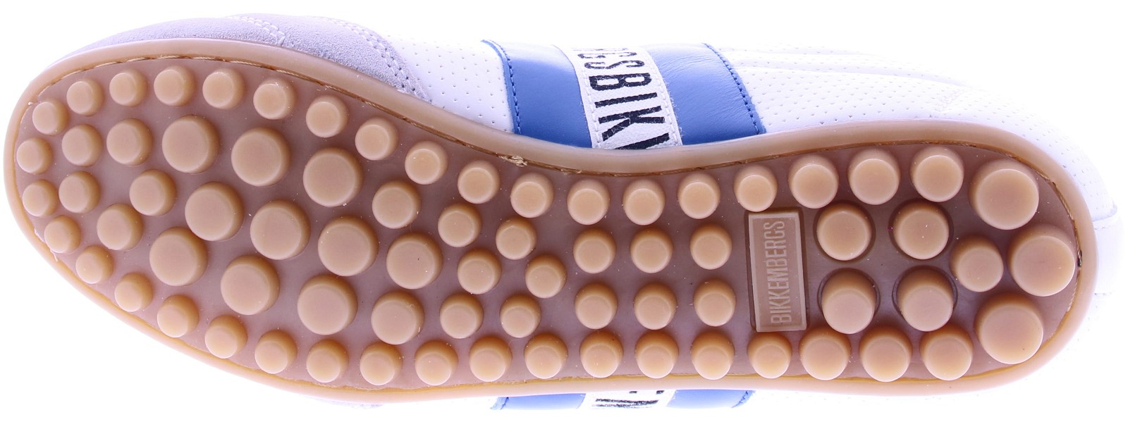 Wit leren heren sneaker van Bikkembergs. Deze sportieve sneaker is uitgevoerd in soepel, geperforeerd leer en afgewerkt met een suède neus. De iconische noppenzool zorgt voor licht en flexibel draagcomfort, terwijl de blauwe merkband het model een frisse en moderne uitstraling geeft. Het uitneembare voetbed biedt extra ondersteuning en eenvoudig onderhoud. Een veelzijdige keuze voor een verzorgde, casual stijl. Ontdek ook de andere heren sneakers van Bikkembergs bij Klijsen.