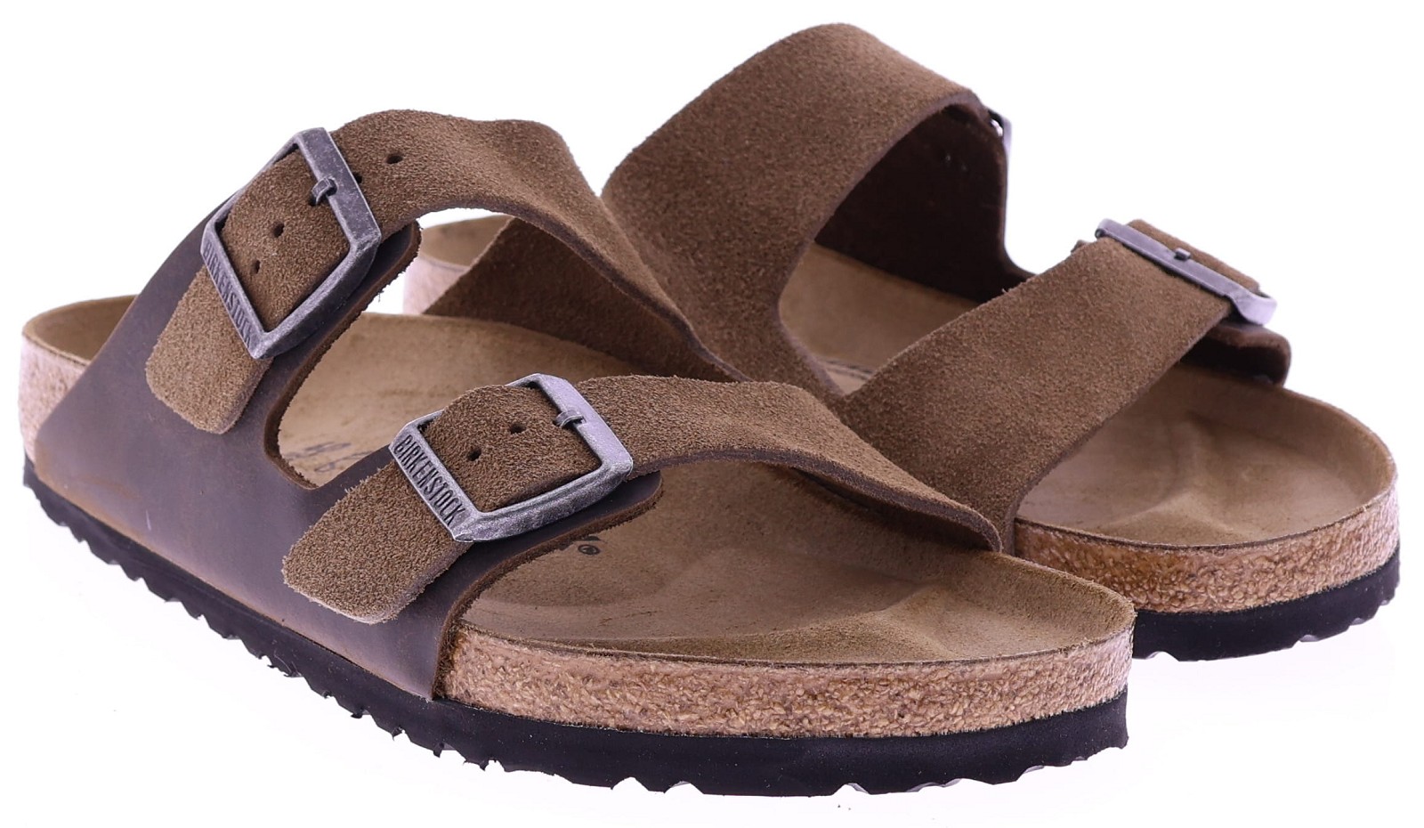 Bruin leren met suede heren slipper van Birkenstock. Deze Arizona BS Mixed Leather in de kleur Dark Tea is uitgevoerd in een combinatie van soepel leer en zacht suède voor een natuurlijke, robuuste uitstraling. De twee verstelbare banden zorgen voor een perfecte pasvorm, terwijl het anatomisch gevormde voetbed van kurk en latex optimale ondersteuning en langdurig comfort biedt. De slijtvaste loopzool maakt deze klassieker geschikt voor dagelijks gebruik. Ontdek ook de andere heren slippers van Birkenstock bij Klijsen.