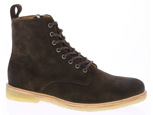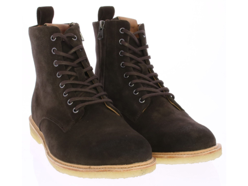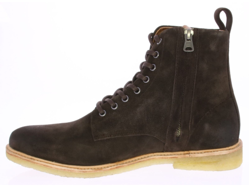 Heren veterboot van Blackstone in het donkerbruin suede met een rits op een soepele crepezool.