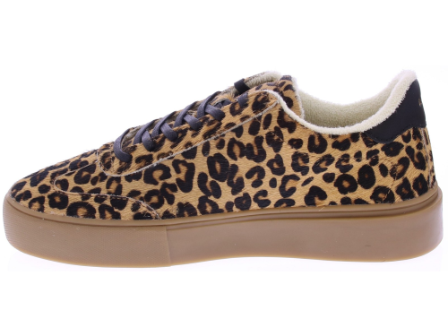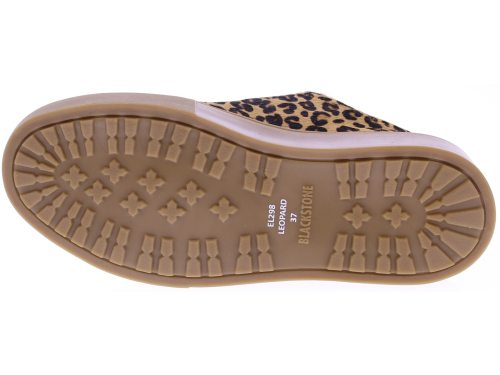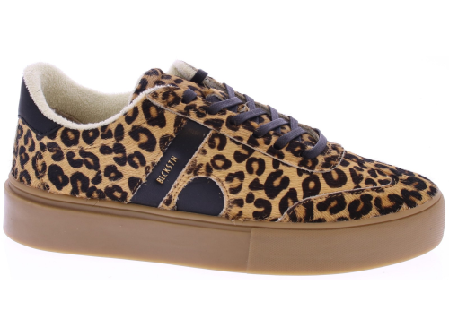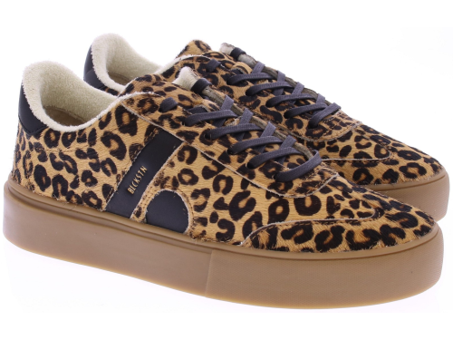 Panterprint dames sneaker van Blackstone EL298. Uitgevoerd in "pony"materiaal met zwart leren details en zwarte veter. Het zachte voetbed is uitneembaar. Aan de zijkant zit een goudkleurig logo.
