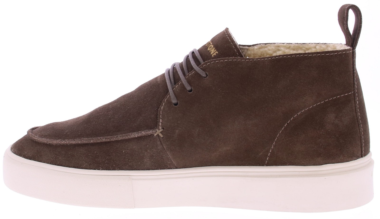 De Blackstone CG-183 is een moderne klassieker met een stoere uitstraling en een luxueuze afwerking. Uitgevoerd in donker taupe suède, straalt deze halfhoge herenschoen ingetogen stijl uit met een natuurlijke, aardse kleur die perfect past bij het najaar. De schoen is volledig gevoerd met zachte wol, wat zorgt voor warmte, ademend comfort en een heerlijk zacht gevoel aan de voet. De robuuste, maar lichte witte rubberen cupzool biedt demping en grip.