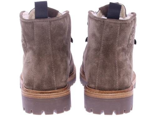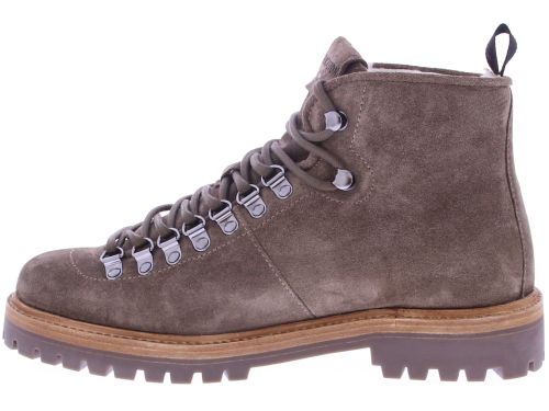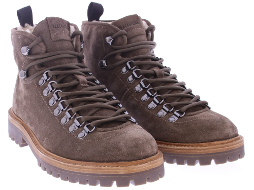 De Blackstone EG567 is een robuuste, functionele en stijlvolle herenboot, geïnspireerd op klassieke bergschoenen maar ontworpen voor het dagelijks leven. Uitgevoerd in hoogwaardig khaki suède en gevoerd met 100% natuurlijke wol, is deze schoen ideaal voor herfst- en winterse omstandigheden. Het bovenwerk van zacht suède heeft een stoere, matte afwerking en is voorzien van metalen veterhaken die zorgen voor een stevige sluiting en outdoor uitstraling. De volledig wollen voering biedt natuurlijke warmte en ademend comfort, terwijl de dikke profielzool van rubber zorgt voor optimale grip en ondersteuning op elk terrein. De hiel-lus maakt aan- en uittrekken extra makkelijk.