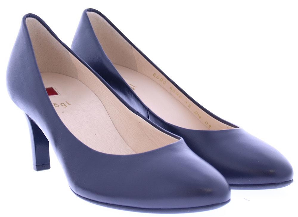 Donkerblauw leren dames pump van Högl. Deze pump heeft een goede pasvorm en met het zachte voetbed biedt deze schoen ultiem comfort. Met een hakhoogte van 6 cm en de rubberen zool die zorgt voor grip en stabiliteit maakt deze pump de ideale stewardessen schoen.