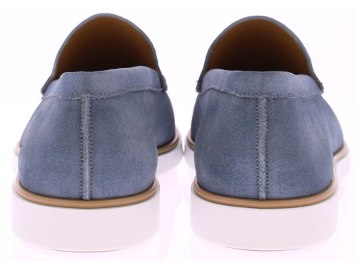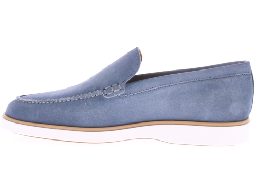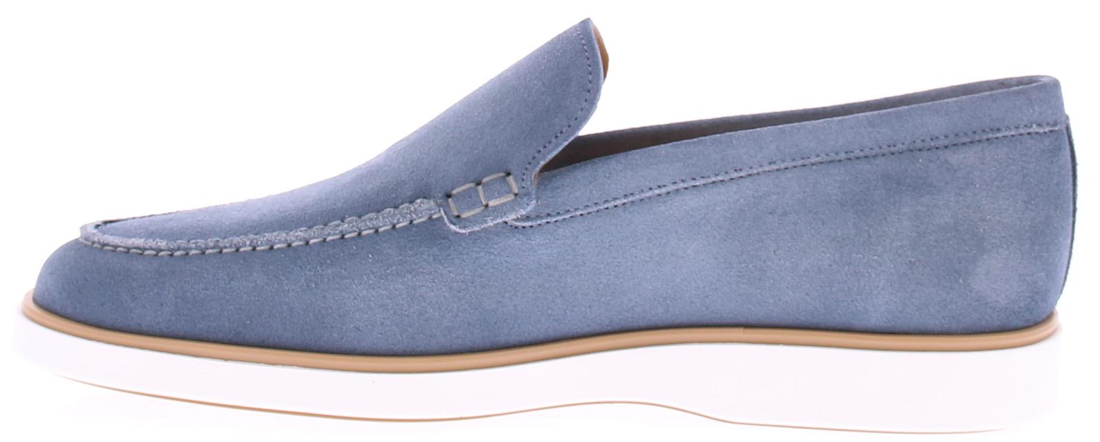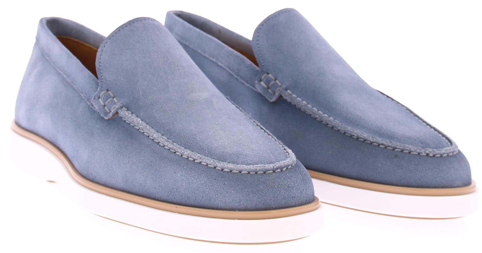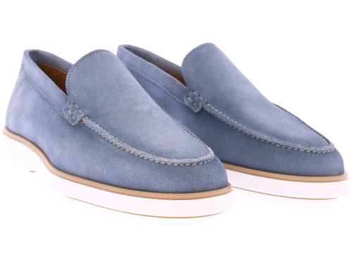 Instapper van Magnanni in jeans suede op een sportieve offwhite zool en met een kalfsleren voering. Let op: de loafers vallen groter dan normaal. Ons advies is om een maat kleiner te nemen.