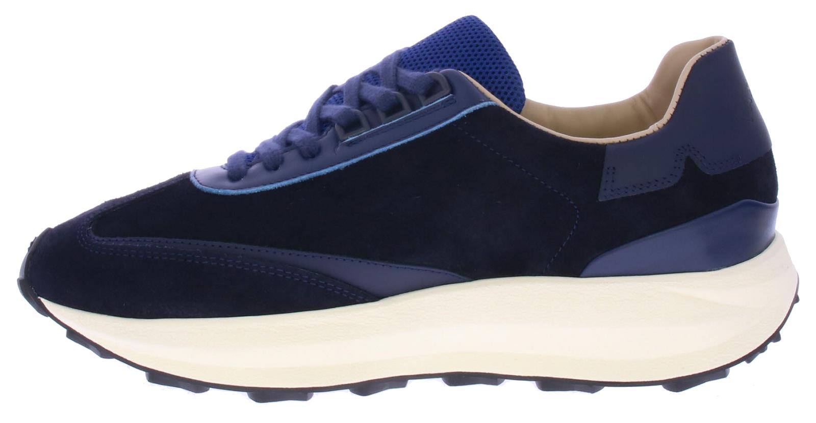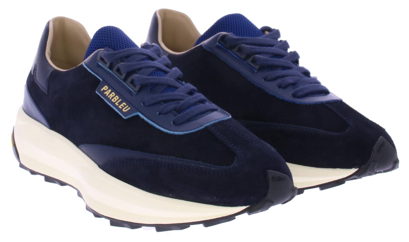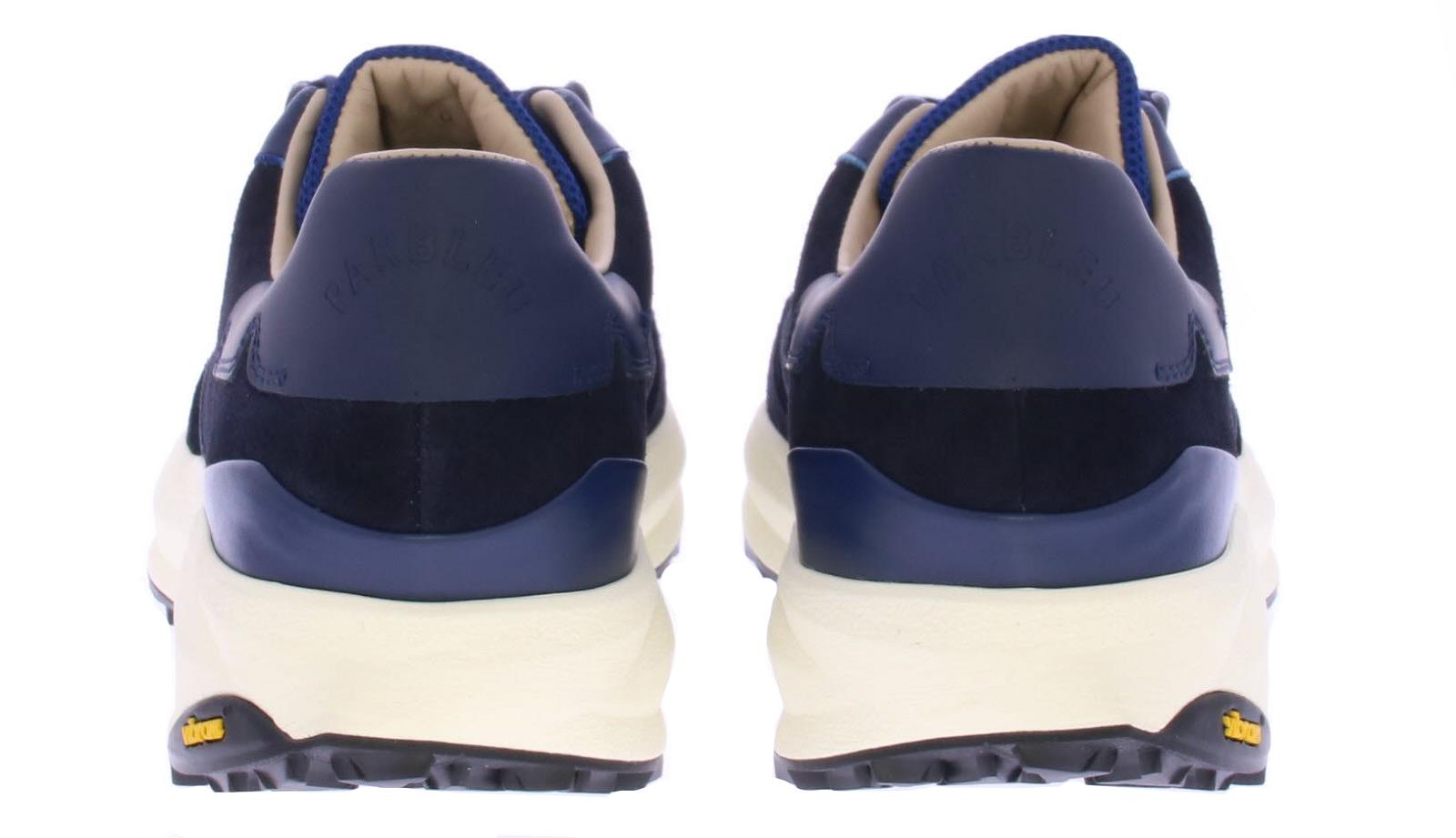 Heren sneaker van Parbleu op een grove rubberen vibram zool. De schoen heeft een blauw suede bovenwerk en heel veel demping in de zool. De voering is van leer en het voetbed uitneembaar.