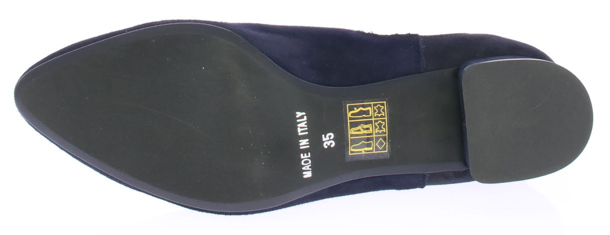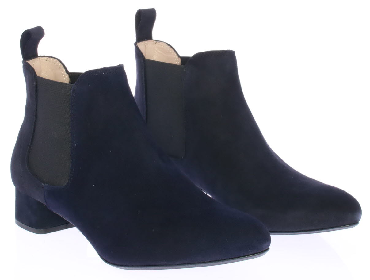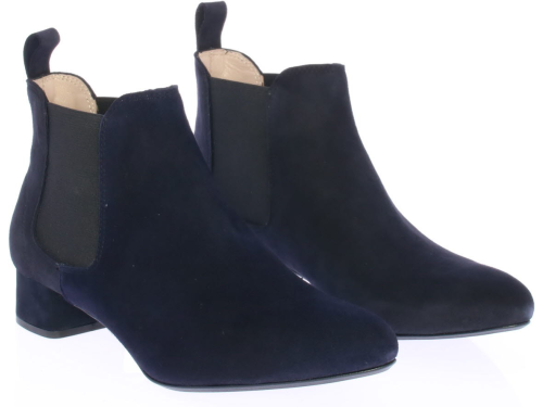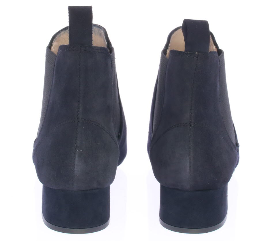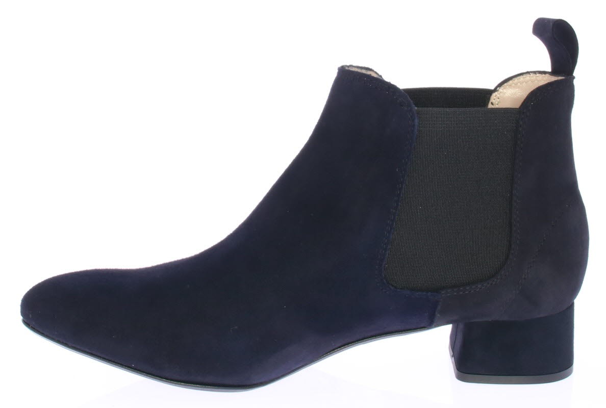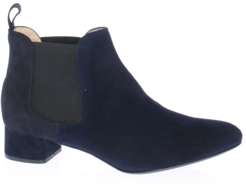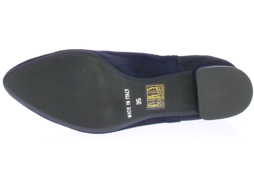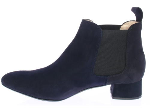 Donkerblauw suede dames enkellaars van Pascucci. Deze mooie basislaars is simpel afgewerkt met een klein 3 cm hakje en elastiek aan de zijkant. De voering is leer en de zool is van rubber.