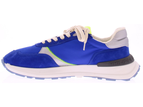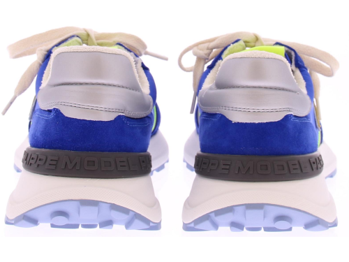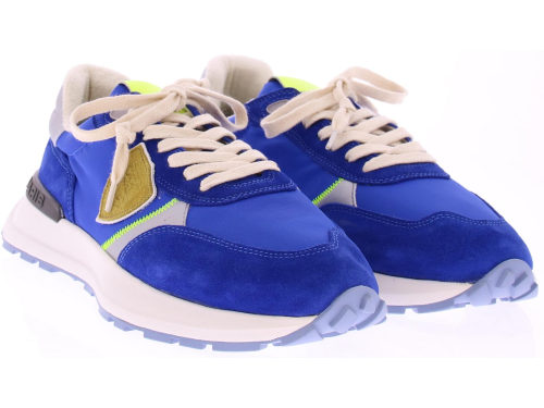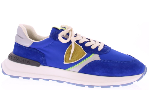 Heren sneaker van Philippe Model in een kobalt blauw combi. De schoen heeft combinatievoering van leer met stof en heeft een uitneembaar voetbed.