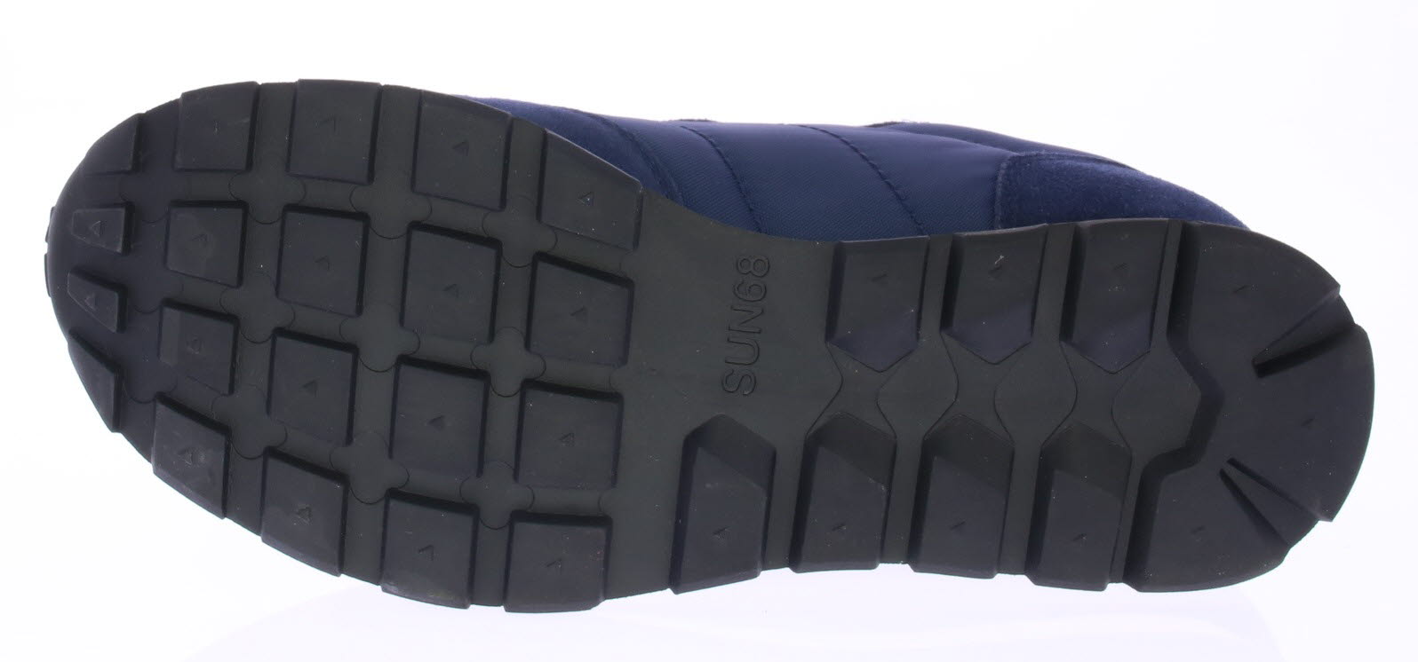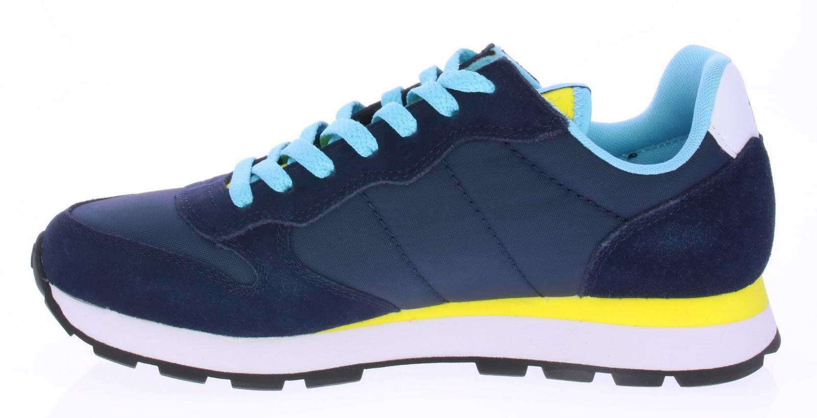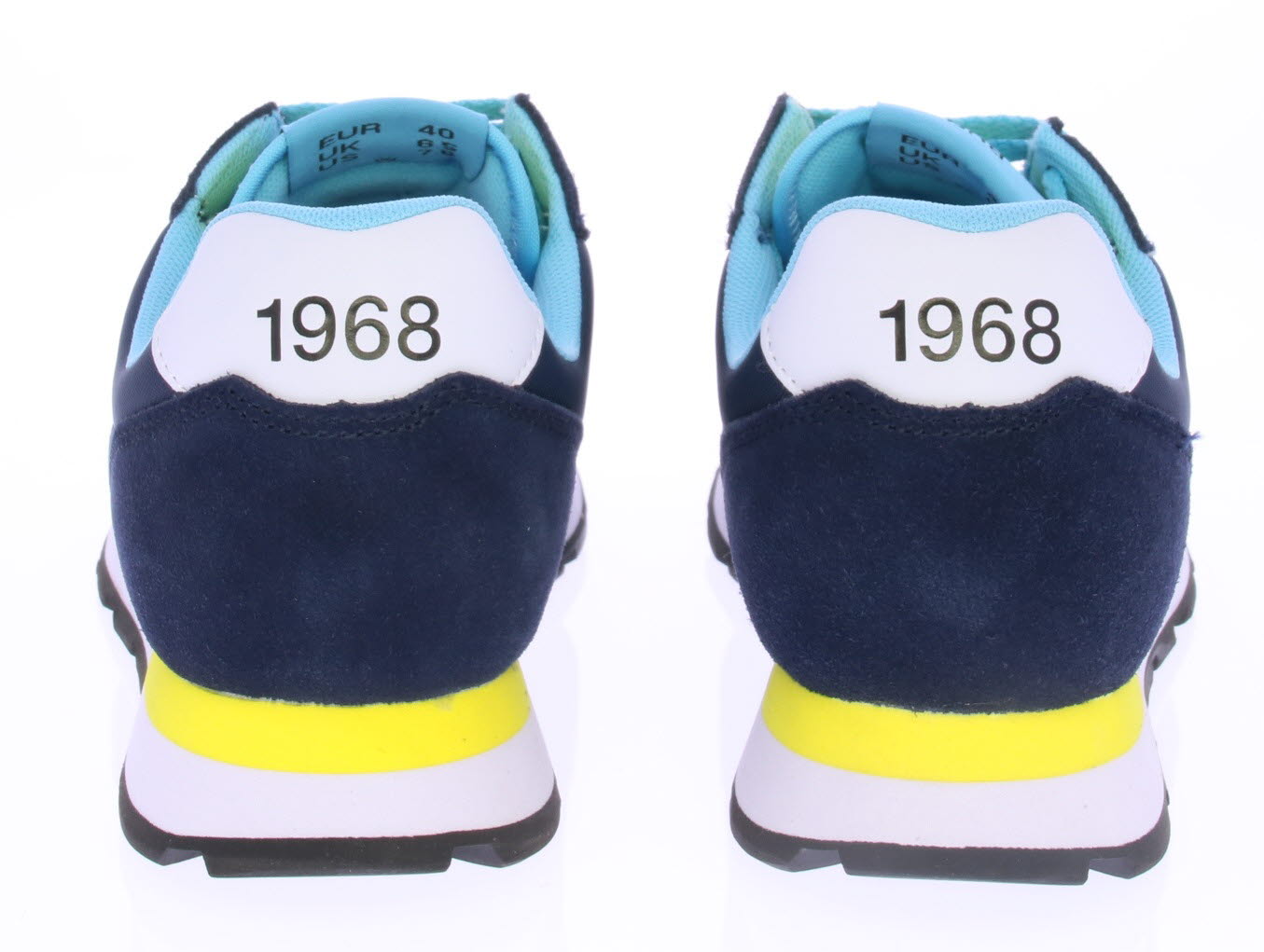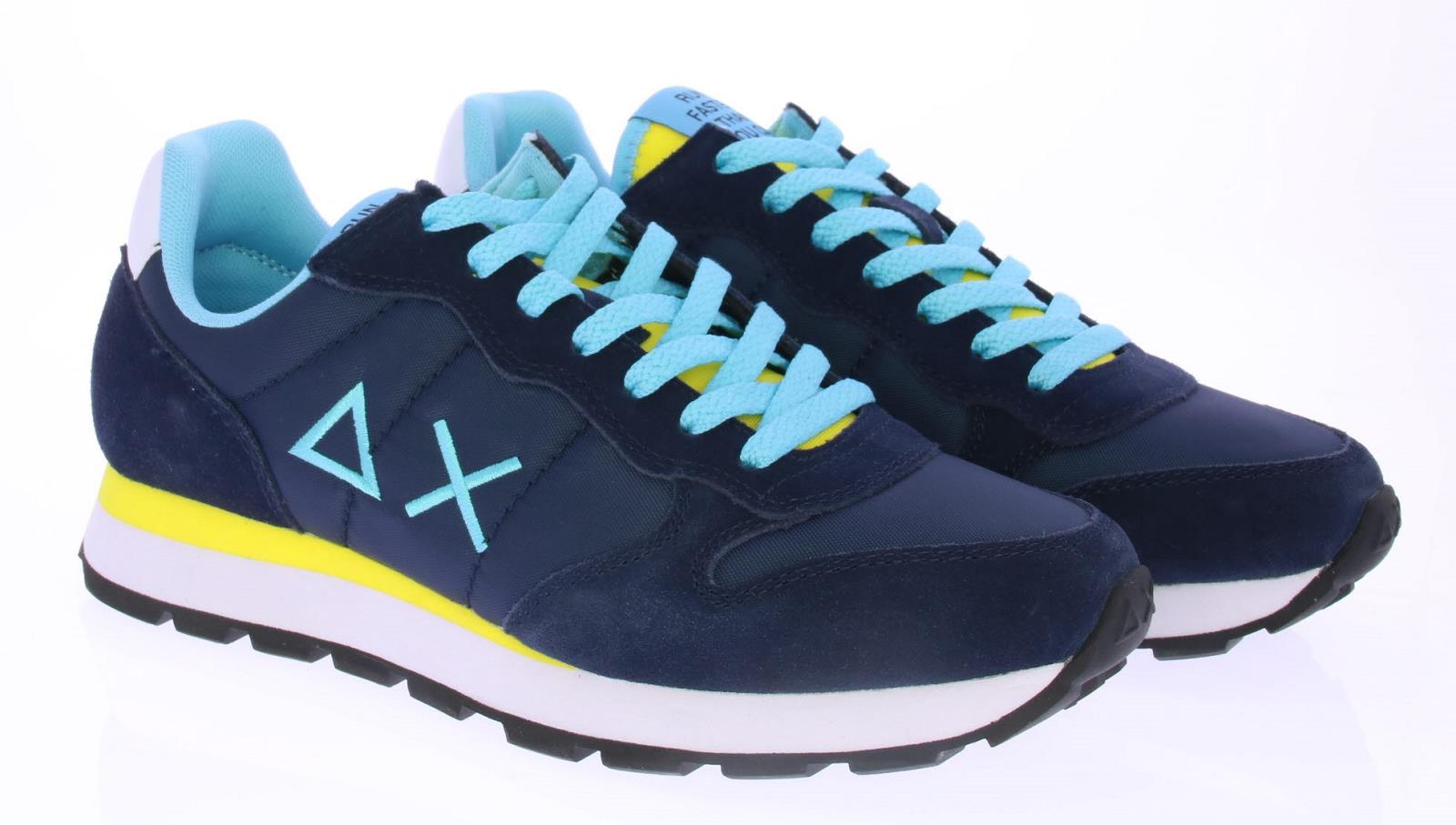 Donker blauwe stoffen heren sneaker van Sun68. De sneaker heeft een fluo geel accent op de zool. De binnenzool is uitneembaar. LET OP: deze sneakers vallen klein. We adviseren u dan ook om een maat groter te bestellen.