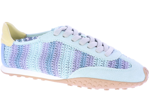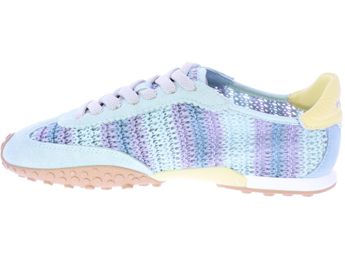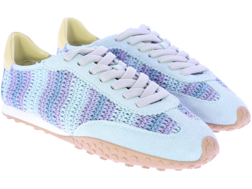 Lichtblauwe suède dames sneakers van Hoff, model bridge woven. Deze zomerse sneaker is uitgevoerd in gehaakt textiel met suède accenten, waardoor hij licht, luchtig en stijlvol is. De kleurenmix van blauw, lila en zachtgeel geeft een frisse en unieke uitstraling. De comfortabele zool zorgt voor een zachte afwikkeling bij iedere stap. Ontdek ook de andere dames sneakers van Hoff bij Klijsen.