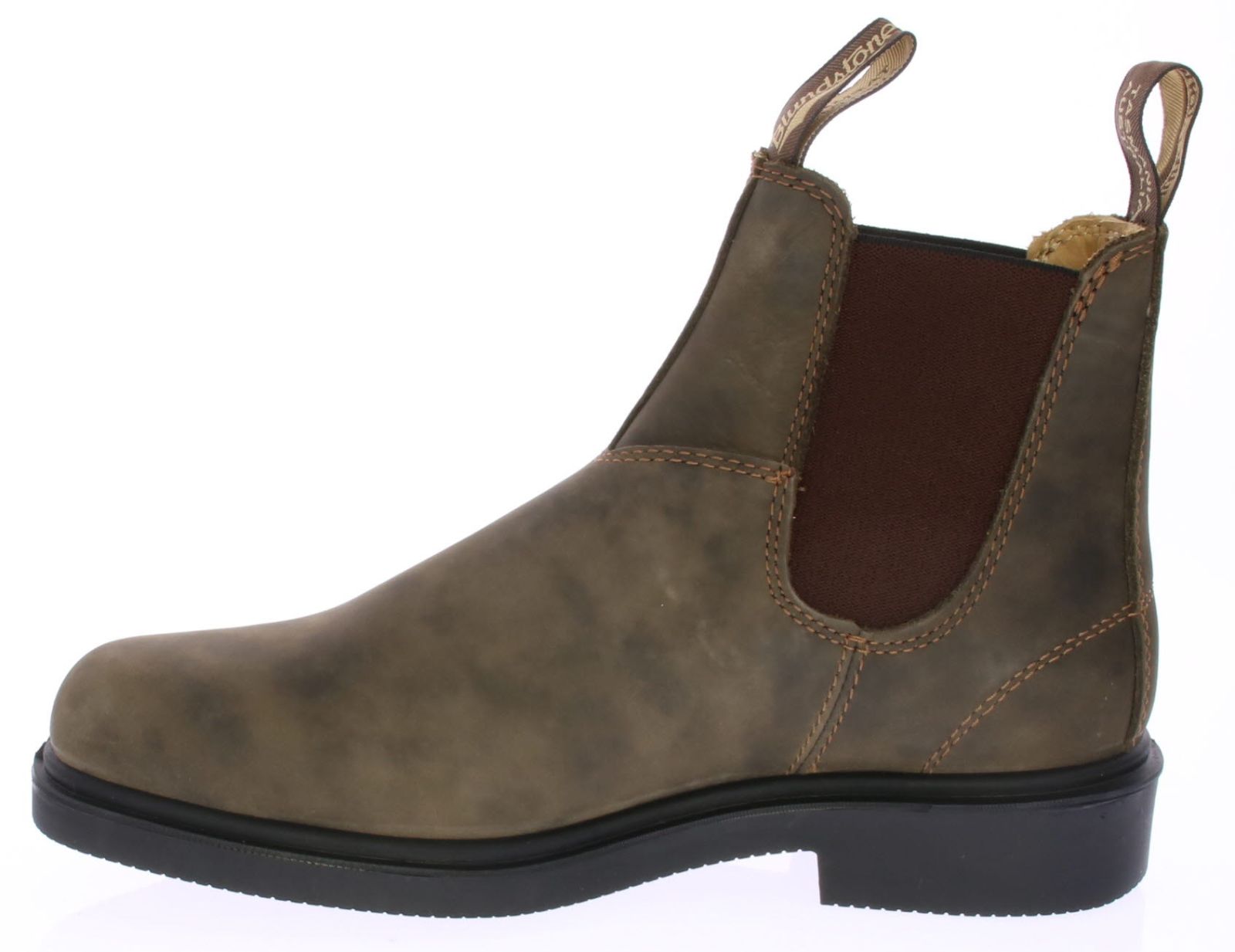 Bruin gevette nubuck heren Chelseaboot van Blundstone. De laars is waterafstotend tot aan het elastiek. De soepele zool en het comfortabele voetbed zorgen ervoor dat kenners steeds weer een nieuw paar kopen. Heel geschikt ook voor een bredere voet. De twee aantreklusjes zijn voorzien van het Blundstone logo. De leest van dit model is wat stomper met de afgeronde hoeken. Dit model is voorzien van SPS, shock protection system.